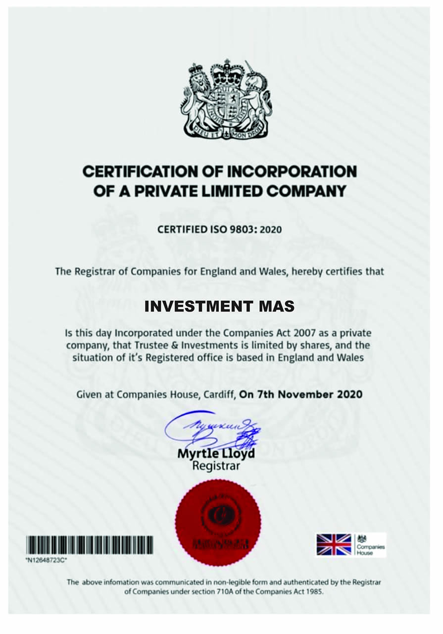 Investmentmas.com platform is an international investment company officially registered in United Kingdom. The activity of our company is aimed at the forex, stocks and cryptocurrency trading and providing investment services worldwide. Any kind of investment activities and fiduciary management services are carried out on legal grounds.